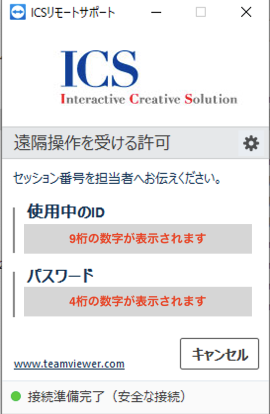 リモートサポートは、TeamViewerを使ってオペレータが画面や弊社からリモート操作をして設定などのサポートをさせていただきます。